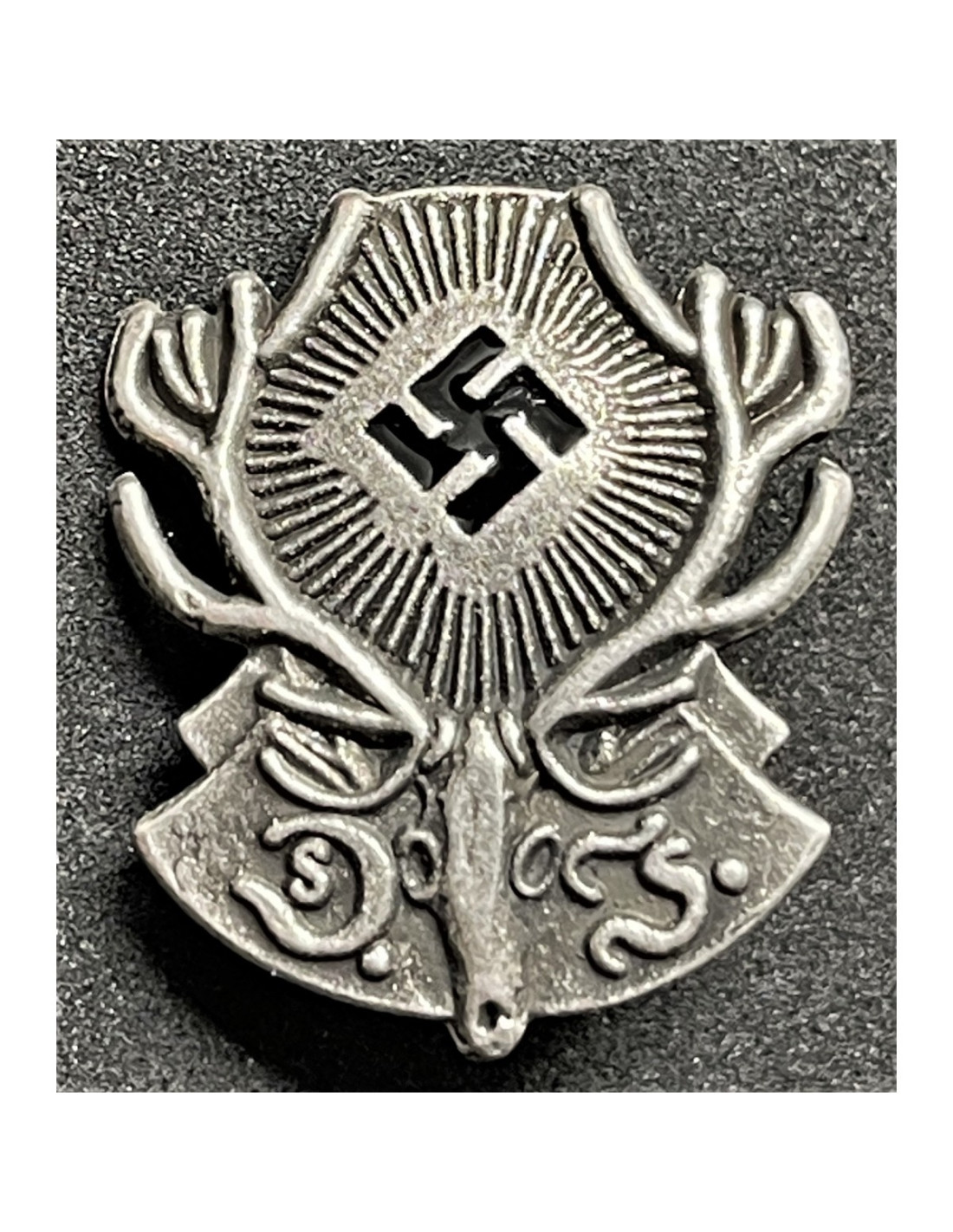 With pin. Reichsbund Deutsche Jägerschaft (German Hunting Society) was the official hunting society in Nazi Germany, 1934–1945. Membership was mandatory for all who possessed a hunting license.