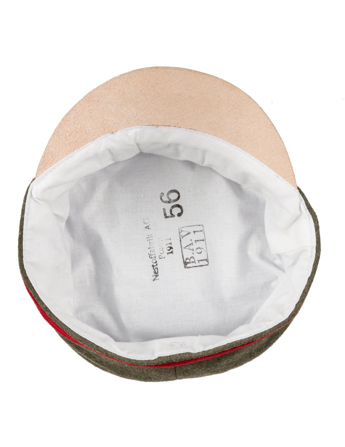 Genaaid van in Europa gemaakte veldgrijze wol met katoenen voering. Corps kleur - rode band en rode biezen, gebruikt door infanterie onderofficieren . Vizier is gemaakt van natuurlijk leer.